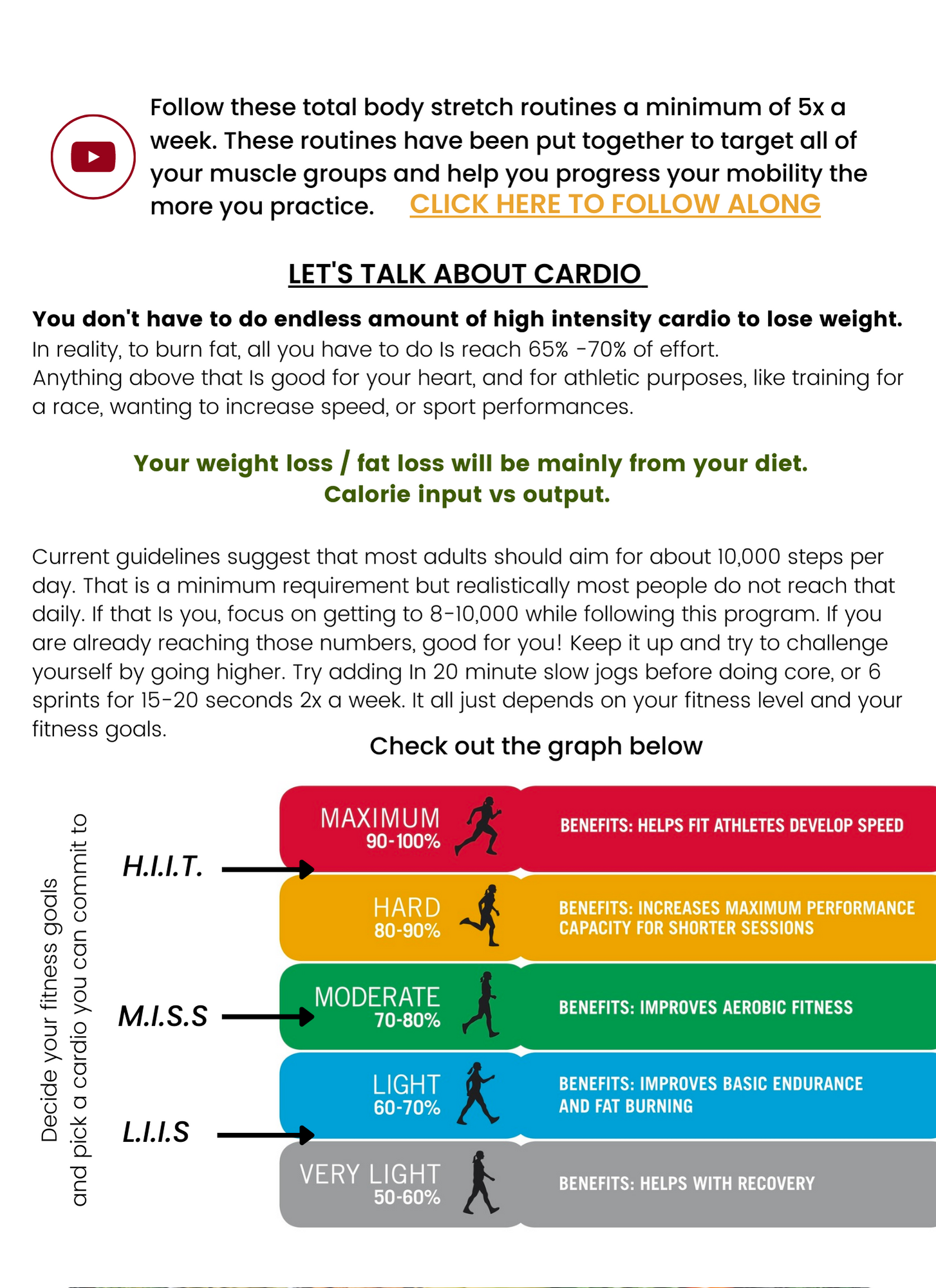 You'll have a cardio guide, and warm ups to follow for your workouts.